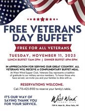 Our buffet is free to all Veterans, and available during lunch and dinner!