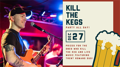 All day! Prizes for the ones who kill the keg and LIVE Music Featuring Trent Romans Duo.